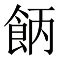 , 笔画为13画, 部首为飠, unicode编码296C4, 汉语字典解释:越南汉字读音bánh饼类食品,古壮字读音bingj饼。