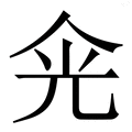 廣平聲。【說文】从火在人上。本作灮,今作光。【徐曰】光明意也。【易·需卦】有孚光亨。【程傳】有孚則能光明而亨通。【正韻】輝光,明耀華彩也。