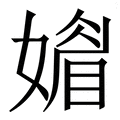 , 拼音为mèi, 收录于康熙字典丑集下, 女部, 康熙笔画为12画, 《康熙字典》原文:〔古文〕