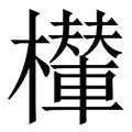 , 拼音为niǎn, 收录于康熙字典辰集中, 木部, 康熙笔画为17画, 《康熙字典》原文:【集韻】拘玉切,音臼。【史記·河渠書·乗橋註】作檋。徐廣曰:直轅車也。詳橋字註。亦同梮。詳梮字註。