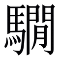 , 拼音为xián, 收录于康熙字典亥集上, 馬部, 康熙笔画为22画, 《康熙字典》原文:【唐韻】戸閒切【集韻】何閒切,