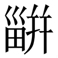 , 拼音为píng, 收录于说文解字卷十二, 甾部, 《说文解字》原文:㠷也。从甾并聲。杜林以爲竹筥,楊雄以爲蒲器。讀若軿。薄經切〖注〗、。