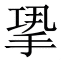 巩, 拼音为gǒng, 收录于说文解字卷三, 丮部, 《说文解字》原文:袌也。从工聲。,或加手。居悚切