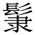 肆, 拼音为sì, 收录于说文解字卷九, 長部, 《说文解字》原文:極陳也。从長隶聲。,或从髟。息利切