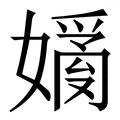 『从女,䜌聲』,指该字为形声字 ,【女】为形旁,【䜌】为声旁。