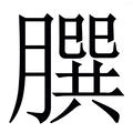 , 拼音为sǔn,zhuàn, 收录于说文解字卷四, 肉部, 《说文解字》原文:切孰肉,内於血中和也。从肉員聲,讀若遜。穌本切