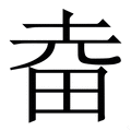 荼, 拼音为tú, 收录于说文解字卷一, 艸部, 《说文解字》原文:苦荼也。从艸余聲。〖注〗臣鉉等曰:此即今之茶字。同都切