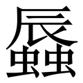 『从虫,辰聲』,指该字为形声字 ,【虫】为形旁,【辰】为声旁。