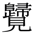 , 拼音为kuī,kuí,guì, 笔画为25画, 部首为見, unicode编码278A6, 汉语字典解释:kui2目不转睛地看。淫视