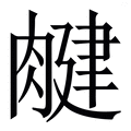 , 拼音为ài, 笔画为19画, 部首为月, unicode编码2685D, 汉语字典解释:见“”