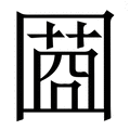 , 拼音为mào,mò, 笔画为12画, 部首为囗, unicode编码211FE, 汉语字典解释:同【冒】。