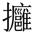 擁, 拼音为yōng, 笔画为16画, 部首为扌, unicode编码64C1, 汉语字典解释:1、 抱;拥抱。《廣韻•腫韻》:“擁,《説文》作,抱也。”《儀禮•公食大夫禮》:“左擁簠粱,右執湆以降。”又环抱;簇拥。唐李白《贈宣城趙太守悦》:“三千堂上客,出入擁平原。” 2、 聚;聚集。《字彙•手部》:“擁,羣從也。” 3、 围裹。《南史•隱逸傳上•陶潛》:“敗絮自擁。” 4、 持;执持。《廣雅•釋詁三》:“擁,持也。”引申为控制;掌握。《漢書•谷永傳》:“將軍履上將之位,食膏腴之都,任周、召之職,擁天下之樞,可謂富貴之極。” 5、 掀卷;裹挟;推送。《宋史•忠義傳一•李若水》:“粘罕令擁之去,反顧駡益甚。” 6、 拥护;护卫。《字彙•手部》:“擁,衛也。” 7、 占据;占有。漢賈誼《過秦論》:“秦孝公據崤函之固,擁雍州之地。” 8、 遮掩;蒙蔽。《集韻•鍾韻》:“擁