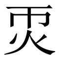 , 拼音为nuǎn, 笔画为16画, 部首为火, unicode编码243D9, 汉语字典解释:同【暖】。