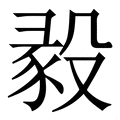 , 拼音为yì, 笔画为14画, 部首为殳, unicode编码23AB4, 汉语字典解释:同【毅】。