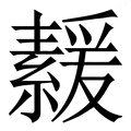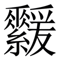 , 拼音为huǎn, 笔画为19画, 部首为糹, unicode编码2617B, 汉语字典解释:1、 同“緩”。 ,同【缓】。