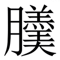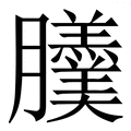 , 拼音为gēng, 笔画为23画, 部首为月, unicode编码268CD, 汉语字典解释:,同【羹】。