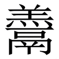 , 拼音为gēng, 笔画为14画, 部首为羊, unicode编码2639F, 汉语字典解释:同【羹】。