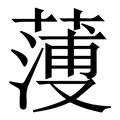 , 拼音为báo,bó,bò, 笔画为15画, 部首为艹, unicode编码26EC8, 汉语字典解释:同【薄】。