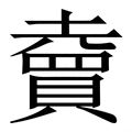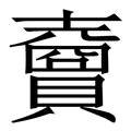 , 拼音为mài, 笔画为17画, 部首为貝, unicode编码27DD3, 汉语字典解释:1、 同“賣”。《玉篇•出部》:“,今作賣。”唐慧琳《一切經音義》卷十六引《字統》云:“買之賤,之貴,朝買而夕。” ,同【卖】。