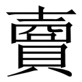 , 拼音为mài, 笔画为18画, 部首为貝, unicode编码27DE8, 汉语字典解释:同【卖】。