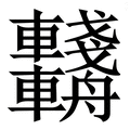 , 拼音为zhōu, 笔画为27画, 部首为車, unicode编码283FA, 汉语字典解释:,同【輈】。