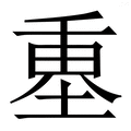 , 拼音为zhòng,chóng, 笔画为12画, 部首为土, unicode编码2137A, 汉语字典解释:同【重】。
