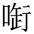 嗛, 拼音为xián,qiàn,qiè, 笔画为13画, 部首为口, unicode编码55DB, 汉语字典解释:1、 古同“衔”,用嘴含。 2、 怀恨:“太后由此~嫣。” ,1、 不足:“满则虑~。” 2、 歉收:“一谷不升谓之~。” ,1、 满足。 2、 快意。 ,(鸟等)用嘴啄,颊囊,猴子等嘴里两腮上暂时贮存食物的地方。又同“谦”、“歉”。