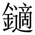 , 拼音为dí, 笔画为19画, 部首为釒, unicode编码28AE2, 汉语字典解释:同【镝】。