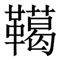 , 拼音为hé, 笔画为18画, 部首为韋, unicode编码293CC, 汉语字典解释:同【鞨】。