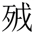 , 拼音为xuè, 笔画为8画, 部首为歹, unicode编码239CC, 汉语字典解释:,同【】。