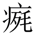 , 笔画为13画, 部首为疒, unicode编码24DCB, 汉语字典解释:同【】。