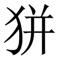 , 笔画为9画, 部首为犭, unicode编码24774, 汉语字典解释:同【】。