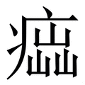 , 笔画为12画, 部首为疒, unicode编码24DB5, 汉语字典解释:同【】。