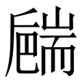, 拼音为zhuǎn, 笔画为16画, 部首为而, unicode编码264DD, 汉语字典解释:小盛酒器