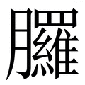 , 拼音为luó, 笔画为23画, 部首为月, unicode编码268C7, 汉语字典解释:见【】