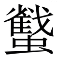 , 笔画为21画, 部首为虫, unicode编码274F7, 汉语字典解释:同【】。