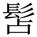 , 拼音为diān,chān, 笔画为15画, 部首为髟, unicode编码29B11, 汉语字典解释:chan1[鬑]①鬓发稀疏。②头发下垂。发髻