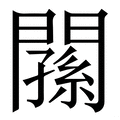 , 拼音为zhuǎn, 笔画为25画, 部首为門, unicode编码28DF1, 汉语字典解释:①开闭门键。②古代丝缕的计量单位,八十缕为一总,十总为一