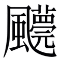 , 拼音为hōng, 笔画为18画, 部首为風, unicode编码29607, 汉语字典解释:风声