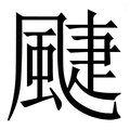 , 笔画为17画, 部首为風, unicode编码295F3, 汉语字典解释:音燮。風貌。