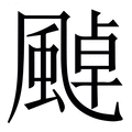 , 拼音为zhào, 笔画为17画, 部首为風, unicode编码29600, 汉语字典解释:见“”
