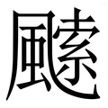 , 拼音为suǒ, 笔画为19画, 部首为風, unicode编码2961D, 汉语字典解释:风声
