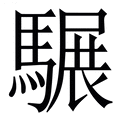 , 拼音为zhàn, 笔画为20画, 部首为馬, unicode编码29947, 汉语字典解释:马躺在地上打滚