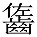 , 拼音为cuó, 笔画为22画, 部首为齒, unicode编码2A613, 汉语字典解释:1、 牙齿错生。