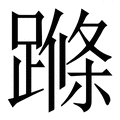 , 拼音为tiào, 笔画为17画, 部首为足, unicode编码280DC, 汉语字典解释:同【跳】。①双脚不停地交互跳动。引申为到处奔走张罗。吴语。东西站。②急促地走。吴语。吴语。
