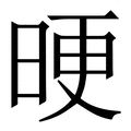 , 拼音为gěng, 笔画为11画, 部首为日, unicode编码231B3, 汉语字典解释:①日高。②日光。