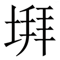 , 拼音为bǎi, 笔画为12画, 部首为土, unicode编码21379, 汉语字典解释:地名用例:甘肃省靖远县有“樊家”。位于《信息交换用汉字编码字符集 第八辅助集》第21区,第93字,古壮字读音baih方;边;面