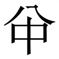 , 拼音为zhōng, 笔画为6画, 部首为八, unicode编码20508, 汉语字典解释:,同【中】。
