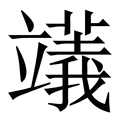 , 拼音为yí, 笔画为18画, 部首为立, unicode编码25AC3, 汉语字典解释:,同【仪】。