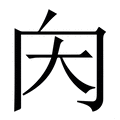 内, 拼音为nèi,nà, 笔画为4画, 部首为冂, unicode编码5185, 造字法为会意:从人、从冂, 本义为入,自外面进入里面, 汉语字典解释:1、 里面,与“外”相对:~部。~外。~定。~地。~阁。~行(háng )。~涵。 2、 称妻子或妻子家的亲戚:~人。~亲。~弟。 3、 亲近:~君子而外小人。 ,1、 同“纳”,收入;接受。